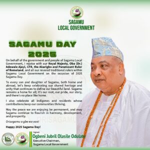 Odulate Felicitates Akarigbo, Indigenes on 2025 Sagamu Day Celebration The Executive Chairman of Sagamu Local Government, Ogbeni Jubril Olasile Odulate,...