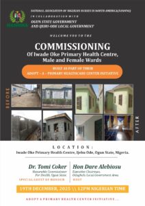 The commissioning ceremonies will be performed by the Honourable Commissioner for Health, Ogun State, Dr. Tomi COKER, today, 19th December, 2025, at the following locations: