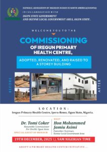 According to Dr. Esther OSHUNLUYI, Chairperson, NANNNA’s Health Mission Committee, and Coordinator of the Adopt-A-Primary Health Centre Initiative in Nigeria, the interventions are aimed at bringing healthcare services closer to underserved communities and providing succour to the less privileged. She noted that the Association’s work in Ogun State demonstrates the powerful impact of collaboration between diaspora professionals, state authorities, and local communities.