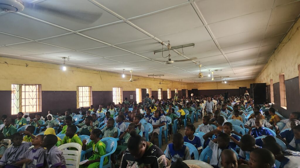 The programme also featured fun literacy games and educational activities designed to make reading enjoyable. Pupils participated in a spelling game using cardboard letters where they were divided into two groups and tasked with arranging the letters correctly to form words. The activity created excitement among the learners while helping them improve their spelling abilities.