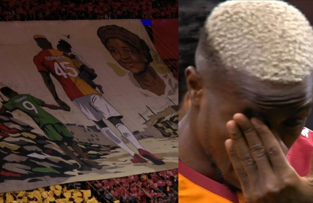Nigeria international Victor Osimhen was left visibly emotional on Tuesday night after fans of Galatasaray S.K. unveiled a touching tifo in his honour ahead of their UEFA Champions League clash against Liverpool F.C..